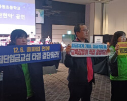 이번 총회에서 교육부와 17개 시도교육청은 집단임금교섭 타결에만 집중하고, 비정규직 노동자들의 처우 개선에는 무관심하다는 사실이 드러났다. 민 위원장은 “30만 학교비정규직 노동자들의 근로 조건을 책임져야 할 교육감들이 총파업으로 내몰린 상황에서, 아이들의 급식과 돌봄이 중단되기 전에 해결책을 내놓아야 한다”고 주장했다.