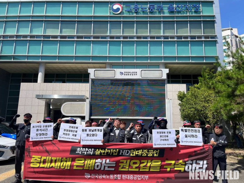 HD현대중공업은 2024년 2월 ‘쉐난도’ 사고로 1명의 노동자가 사망했고, 같은 해 10월에는 전병휘 노동자가 건조 중인 선박 안에서 질식으로 목숨을 잃었다. 2025년 2월에도 트레일러에 깔리는 사고로 또 다른 노동자가 중대 재해를 당하는 등 사고가 끊이지 않았다.