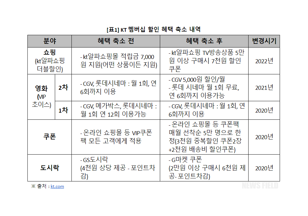 ▶ KT, 혜택 축소 사유 명확히 밝히지 않아…소비자 의견수렴도 없어