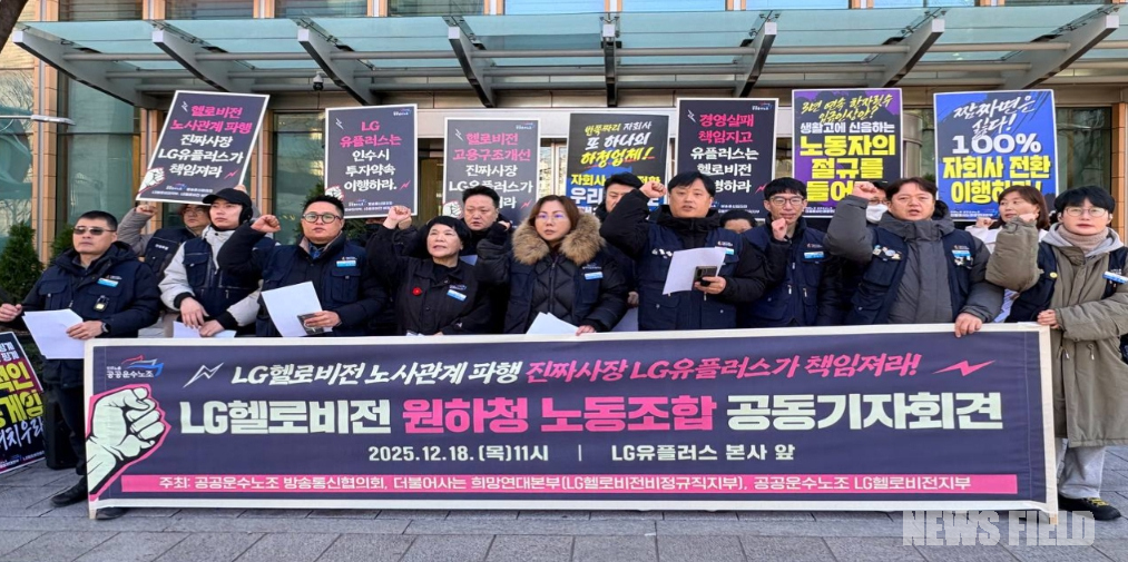 공공운수노조 방송통신협의회와 LG헬로비전지부, LG헬로비전 비정규직지부는 18일 서울 용산구 LG유플러스 본사 앞에서 공동 기자회견을 개최하고 이와 같이 밝혔다. 노조 측은 LG유플러스가 2019년 LG헬로비전 인수 당시 약속했던 투자 이행을 외면한 채, 비용 절감 중심의 경영으로 원하청 노동자들에게만 희생을 전가하고 있다고 주장했다.