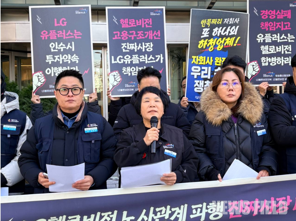 이윤희 공공운수노조 부위원장은 “LG헬로비전의 위기는 현장의 문제가 아니라 진짜 사장인 LG유플러스의 책임 방기에서 비롯된 것”이라며 “투자 대신 이익 이전과 자회사 쥐어짜기만 남은 현실을 바로잡아야 한다”고 강조했다. 이 부위원장은 인수 당시 약속했던 지역성과 공익성 강화가 지켜지지 않고 있는 점을 문제 삼았다.