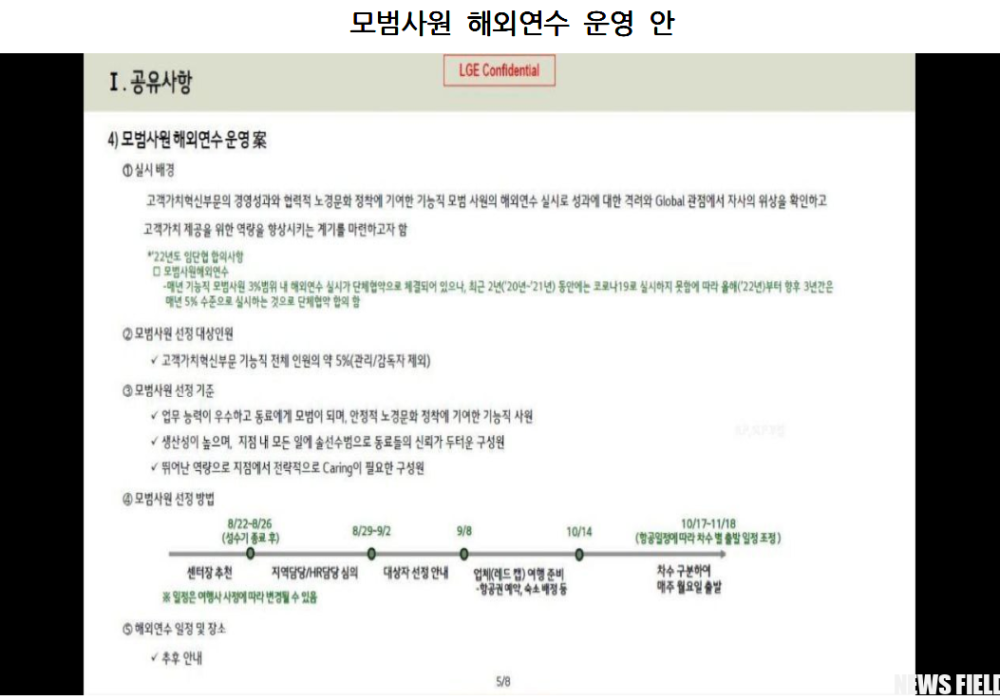 이같은 상황 때문에 민주노총 금속노조 LG전자지회는 사측에 부당노동행위와 공정대표의무위반 등으로 노동위원회에 문제를 제기하자, 사측은 직접적인 표현은 하지 못하게 됐다.